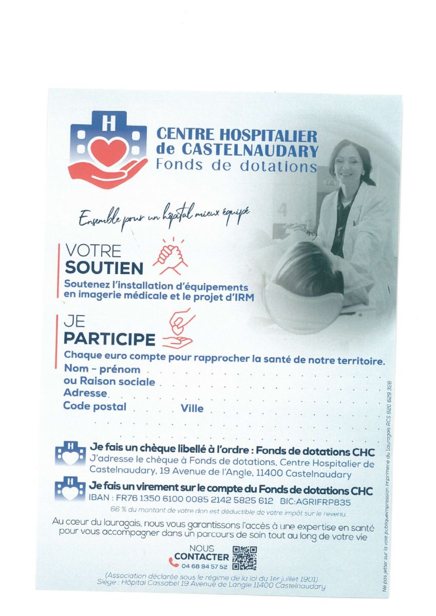 Le centre hospitalier de Castelnaudary met en place une collecte de dons pour accompagner un projet majeur de réaménagement de son espace d’imagerie médicale, avec pour objectif l’accueil futur d’une IRM.