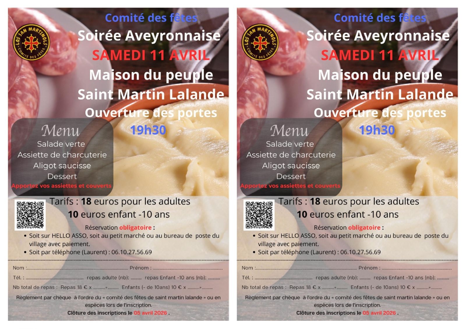 Le comité des fêtes organise une soirée Aveyronnaise le samedi 11 avril 2026 à la maison du peuple
